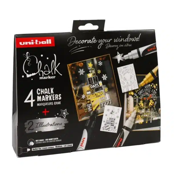 Vi præsenterer den fineste PoscaNyhed – Et Julesæt med 4 flotte julefarver – Lige til at tegne på dine vinduer og andre ikke-porøse overflader.